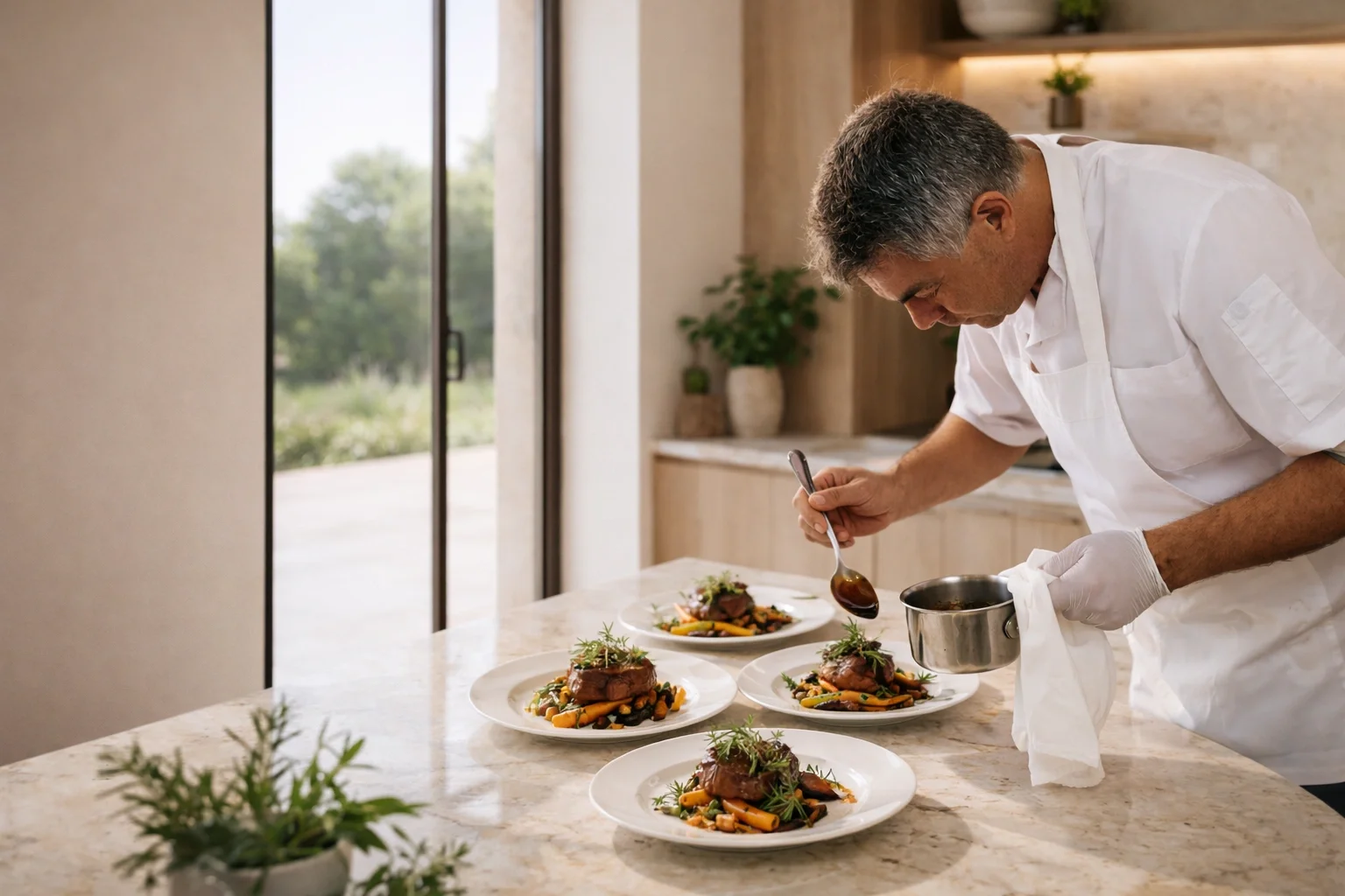 Over thirty years of cooking across Europe, the Mediterranean, and the Arabian Sea taught me that the best private dining experiences are built on three things — exceptional ingredients, skilled preparation, and a chef who genuinely cares about the people at the table.